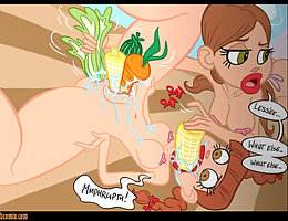 How much vegetables your pussy can take in lesbian comic porn?